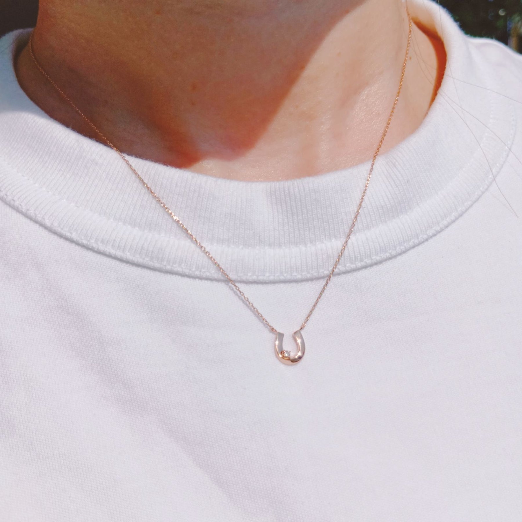 幸福を呼び込むと言われている馬蹄モチーフに、誕生石をあしらったデザインです。「これからも素敵な物語が続きますように」……願いを込めたお守りとしてお持ちください。