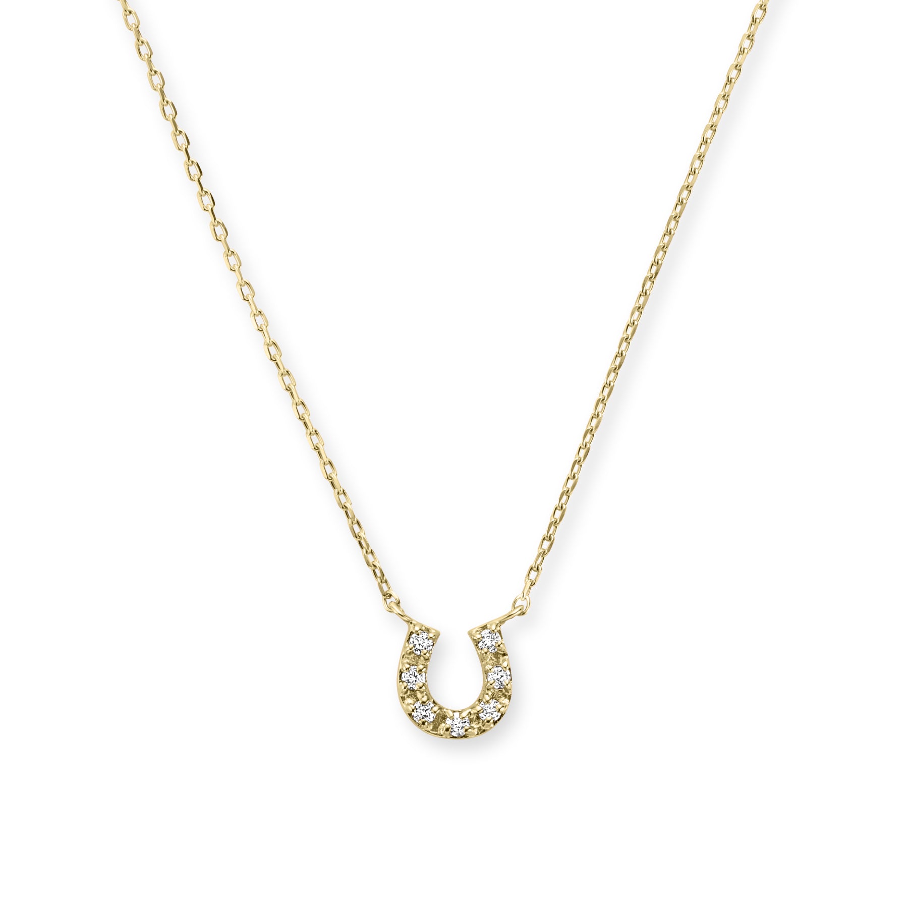 馬の蹄をかたどったネックレス。馬蹄は幸せを呼ぶラッキーアイテム。さり気ない大きさは普段使いにぴったりです。品番:GJP-52素材:K10石:ダイヤモンドカラット数:0.03ctトップサイズ:縦約5mm横約5.3mmチェーン:長さ40cmカット小豆<出荷予定日>6週間